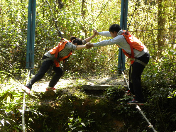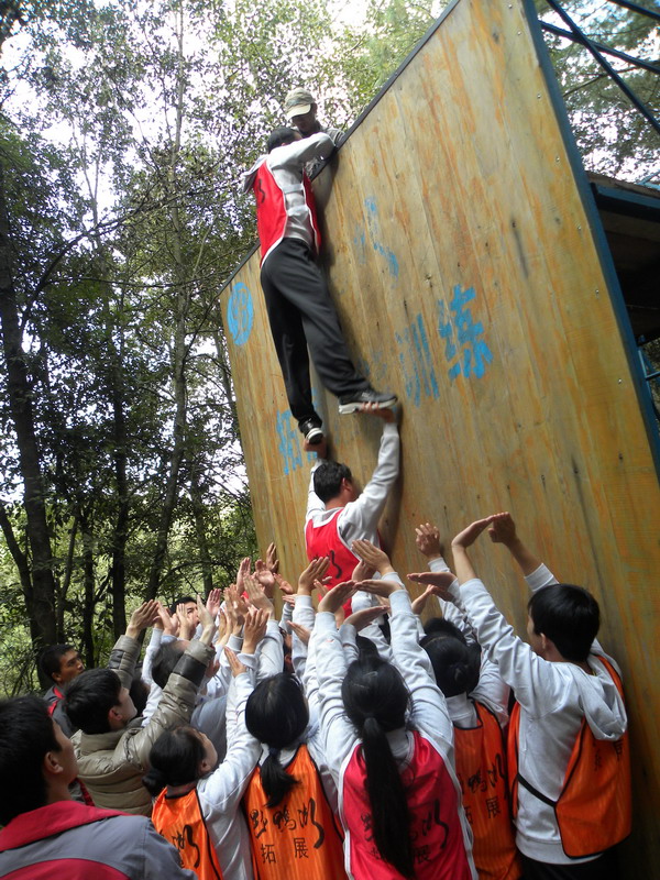 •  20121134日,昆明野鴨湖拓展訓練基地那里留下了我們成長的足跡。在各項訓練活動中,歌聲與微笑同在,汗水與淚水交織,演繹著敢于擋當、不言放棄,奮力拼搏、突破自我,彼此信任、緊密團結的真實故事,深深打動了每一個人。最特別的還是徒手翻越4.5高的團隊墻,因為那里不僅僅有大家奮力向上攀爬劃下的印跡,更多的攀爬過程中緊密配合的汗水及動人的淚水。大家真正體會到了“責任”的份量與團結的力量。我們永遠都是一個團隊!