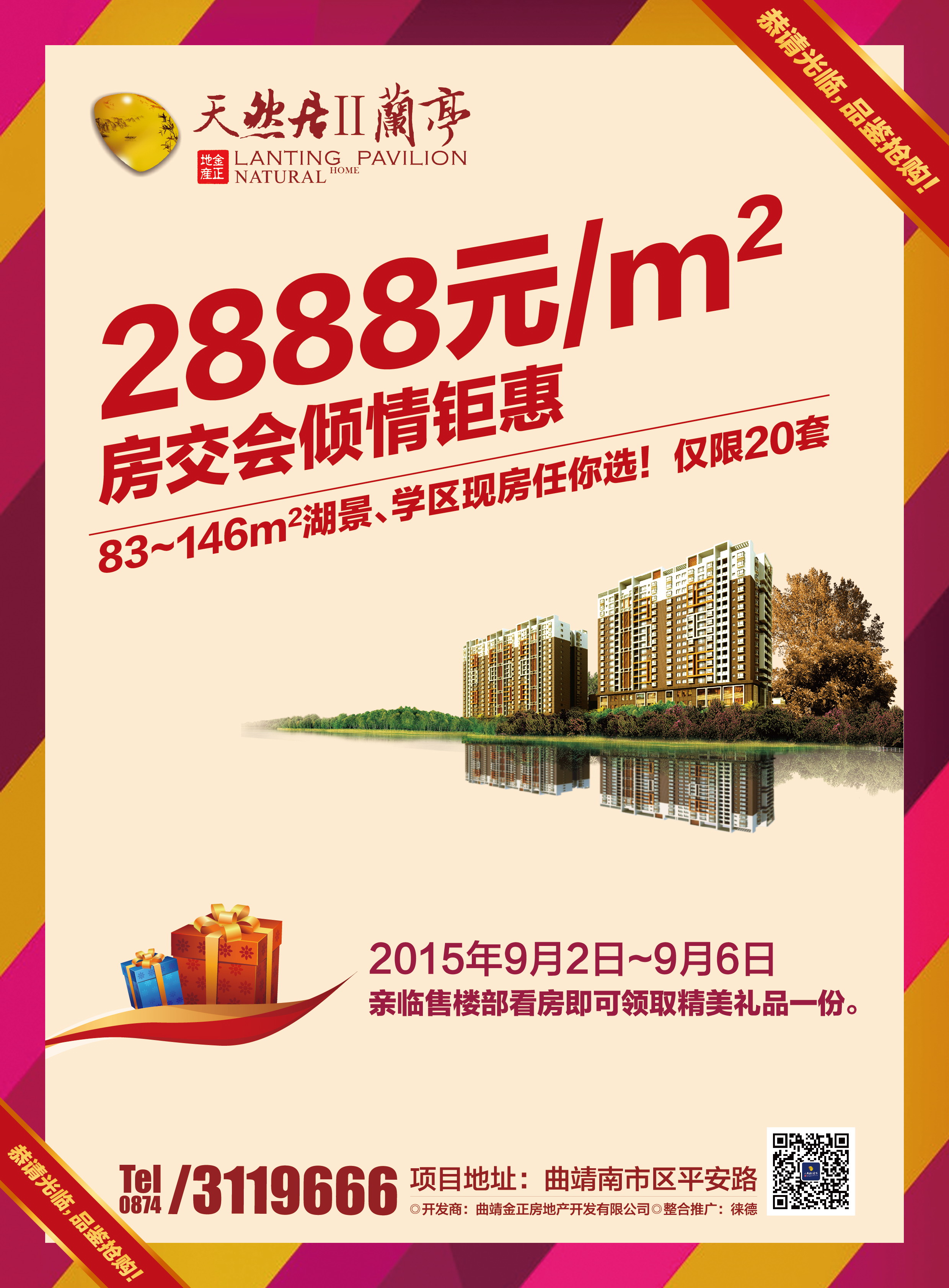 天然居Ⅱ蘭亭將在2015年9月2日至6日曲靖房交會(huì)期間傾情推出2888元/m²,不限戶型、樓層(僅限20套房源)的購房優(yōu)惠活動(dòng),房源有限,先到先得!